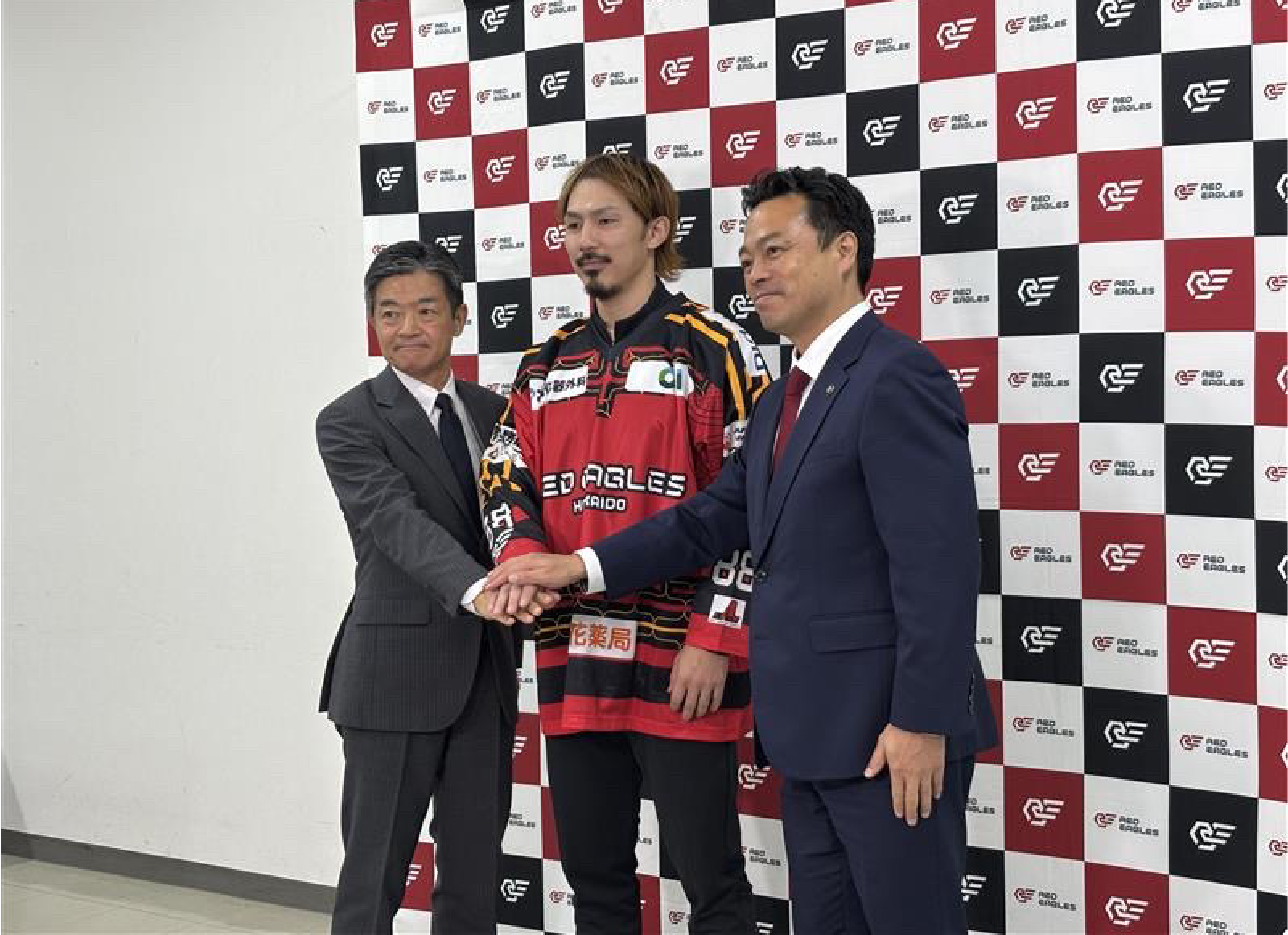 会見内では制作したオリジナルユニフォームデザインの発表の他、来年2/28・3/1 nepiaアイスアリーナで行われるHLアニャンアイスホッケークラブとの試合が、「苫小牧市presents レッドイーグルス北海道vs HLアニャン イランカラプテマッチ」として実施される旨も発表となりました。